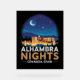 Sumérjase en la magia de Granada con esta escena nocturna inspirada en la Alhambra. Con una cálida arquitectura morisca bajo un cielo nocturno de ensueño, perfecto para viajeros, amantes de la historia y admiradores de la cultura andaluza. Ideal para pegatinas, camisetas y arte mural.