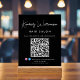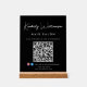 Signo de acrílico negro de moda con su nombre en un elegante guión de firma blanca y negocios en la moderna tipografía blanca. Ingresa tu dirección de sitio web para crear un código QR escaneado para que clientes y clientes vean tus productos, servicios, horas, etc. Añade tus instagram y tus datos de usuario de facebook para que los clientes te sigan en las redes sociales.