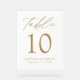 Tarjetas de número de tabla boda minimalistas y de moda con "Table" mostradas en un guión de caligrafía dorada con un fondo acrílico transparente. Para solicitar el signo de la tarjeta de tabla acrílica: agregue su nombre, fecha de boda y número de tabla. Agregue cada número a su carrito individualmente y desprotéjase cuando haya terminado.