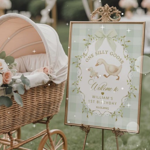 Señal Acrílica One Silly Goose Sage Gingham Birthday Welcome