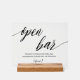 Add a playful, polished touch to your reception with the Open Bar Wedding Acrylic Sign – a stylish way to let guests know the drinks are flowing! With modern typography and a clean, elegant layout, this sign strikes the perfect balance between fun and sophistication.