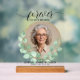 El moderno cartel de acrílico funerario (con o sin soporte de bloqueo de madera) incluye la frase 'Para siempre en nuestros corazones', la foto de su ser querido, su nombre y sus fechas de nacimiento/muerte. COINCIDIENDO elementos de nuestra colección.