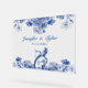 Crear un signo personalizado que tenga el aspecto de la antigua china. Este signo acrílico claro está listo para ser personalizado con los nombres de la novia y el novio y su fecha de boda o con su propio mensaje de personalizado. Tiene un motivo floral azul y blanco y un motivo de pájaro que se ha hecho parecer a las placas de porcelana tradicionales para suministros fiestas con un aspecto elegante.