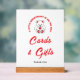 Un peluche rojo y blanco con tarjetas de ducha para bebés y diseño de señalización de regalos. El texto es personalizable. Puede cambiar el tipo de letra, el color del tipo de letra, el tamaño del tipo de letra, el espaciado de la línea, el color del gráfico del oso de peluche y cambiar la posición del texto mediante la herramienta Diseño.
