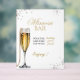 Celebra la futura novia con esta elegante invitación a la ducha de novia. Con un diseño moderno y minimalista con perlas blancas suaves y un toque de glam Prosecco, es perfecto para una moda y una elegante ducha de boda. Personalizar fácilmente para los detalles del evento. Ideal para celebraciones bohemias, modernas o con temática de perlas y prosecco.