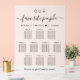 La tabla de asientos del boda acrílico esmerilado de moda registra hasta 10 mesas con "nuestra gente favorita" en una tipografía simple y un guión elegante con toques, nombres y citas de bodas unidos por un corazón y "Estamos tan contentos de que estés aquí" en la moderna tipografía serif.