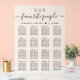 Elegante tabla de asientos de acrílico escarchado con boda para hasta 16 mesas con "nuestra gente favorita" en una simple tipografía moderna y un guión de moda con chispas y tu nombre y fecha boda unidos por un corazón.