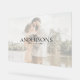 Create your own personalized acrylic wedding guest signing board. Add your own custom photo background alongside surname in modern minimalist typography and wedding date to this signing print template. A great guestbook alternative for your guests to leave their own signature or message for a keepsake of your special day. Using an oil based paint marker is recommended for best results.