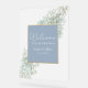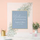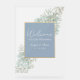 Bienvenido a tus invitados con estilo con este letrero de boda moderno y elegante. Luciendo un fondo azul polvoriento adornado con flores silvestres bohemias y acentos dorados brillantes, combina perfectamente el encanto rústico con el estilo vintage. ¡Perfecto para crear un tono cálido y acogedor en tu día especial!