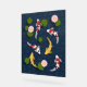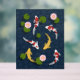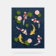 Hermoso ilustracion vectorial minimalista de coloridos peces japoneses koi nadando entre las nenúfares en un estanque. Koi es una carpa ornamental de colores vivos domesticada en Japón.