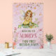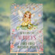 Agradable primer cumpleaños (o cualquier fecha de nacimiento) Exquisito cartel acrílico de hada con estrellas y flores pastel, acompañado de una rana, mariposa y libélula adorables. Cambie el texto a cualquier evento u ocasión. Esta imagen se convertirá fácilmente a los tamaños de 20 x 30 o 24 x 36 pulgadas
