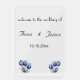 Crea una entrada inolvidable con este signo de bienvenida Boda acrílico de tulipano azul Delft personalizable. Este elegante y claro cartel presenta hermosos tulipanes de color azul y blanco, ofreciendo una eterna estética de inspiración holandesa perfecta para cualquier celebración refinada. Personalízalo con los nombres Anna & James, la fecha boda 16 de octubre de 2009, o el sencillo saludo Bienvenido al Boda de [Nombres] para establecer un tono lujoso para tu evento.