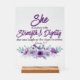 Señal Acrílica Proverbios 31:25 Fuerza y Dignidad Flor Púrpura