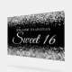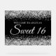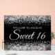Crea tu propio símbolo de acrílico de bienvenida Sweet 16 - 16 cumpleaños para tu amigo. Personalizar la moderna y elegante caligrafía con un moderno estilo de mayúsculas en negro para crear tu propio signo personalizado. El purpurina gris plateado brillante contra el negro se crea con gráficos digitales que se imprimen como una foto en tu cartel.