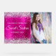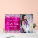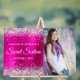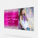 Crea tu propio cartel de acrílico de bienvenida para tu hija con 16 cumpleaños. Reemplace la imagen de ejemplo con su propia foto familiar. Personalizar la moderna y elegante caligrafía con un moderno estilo de letra todo tipo de mayúsculas para crear tu propio signo personalizado. El fondo presenta un falso purpurina brillante de plata en el borde superior con un gráfico de arte digital oscuro de Relieve metalizado metalizado color rosa pálido magenta. El brillo purpurina, brillante y metálico se crea con gráficos digitales que se imprimen como una foto en el cartel.