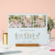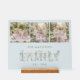Romantic Dusty Blue Floral Family Monogram Custom Acrilyc Sign with Elegant Botanical Cream Roses and Refined Typography with Custom 3-Photo Collage.