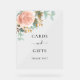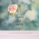 Fondo transparente. Decorada con un gran oro rosa, rosa rosa rosa y eucalipto. Texto: Tarjetas y regalos. Gracias!
