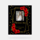 Quinceañera de oro y negro con roses rojos tradicionales vibrantes y tipografía de escritura clásica. Plantilla de foto vía Pixabay bajo licencia CC0 y debe ser reemplazada por su propia foto