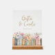 Guíe a sus huéspedes con elegancia usando nuestro cartel acrílico "Libros y flores silvestres". La encantadora mezcla de romance literario y belleza botánica se refleja en ilustraciones acuarelas pintadas a mano de libros y flores silvestres en tonos suaves de rosa, azul, verde y oro. Con una fuente retro de máquina de escribir vintage y un guión con letras a mano en oro a la moda contra un sofisticado fondo de marfil, este cartel le da un toque de elegancia y capricho intemporal a su ducha de bebé. Perfectamente alineado con nuestros productos de coordinación, asegura que cada detalle de su evento esté perfectamente armonizado, dejando una impresión duradera.