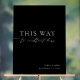 Un moderno signo de boda minimalista con un texto clásico en serif negro con un acento manuscrito y una elegante flecha direccional. Este diseño blanco y negro limpio es perfecto para bodas elegantes, recepciones de moda o horas de cóctel refinadas. Fácilmente personalizar con nombres y fecha para coincidir con su evento. Pareja muy bien con el conjunto completo de carteles de coordinación de la colección "Elena". Vea el vínculo de colección en esta página para ver todos los elementos coincidentes de este diseño. ・ Mockups creadas usando la IA de medio viaje.