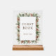 Rótulo Acrílico De Invierno. Mejore su mesa de libro de huéspedes con nuestro cartel acrílico del libro de visitas, que forma parte de la "Elegante suite Boda Pinecone Greenery". Con una vegetación pintada a mano y ramos de pino, este letrero ofrece un toque cohesivo y elegante, que lleva a los huéspedes a dejar sus buenos deseos.