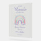 Celebra tu ducha de bebé con estilo con este hermoso cartel acrílico de arcoiris pastel, que incluye texto personalizado para hacer tu evento aún más especial. Ideal para acoger a los huéspedes, marcar la zona del fiesta o añadir un toque personalizado a su celebración. Este elegante diseño refleja los tonos suaves de un arcoiris pastel, lo que lo convierte en perfecto para una ducha de chica. Personalízalo con tu propio texto para crear una pieza única que agregará un ambiente alegre y caprichoso a tu fiesta.