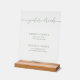 El moderno y elegante signo acrílico de la boda para las bebidas distintivas de la novia y el novio presenta un minimalista diseño en blanco y verde sabio. Personalice los detalles de su bebida con la plantilla fácil de editar que incluye un elegante tipo de letra de guión y un elegante tipo de letra serif. La señal acrílica se puede pedir con o sin soporte de madera. Consulte los elementos que coinciden en la colección "Sage Green Modern Elegant".