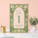 Add a refined touch to your reception tables with this sage and gold stained glass floral acrylic table number sign. Featuring soft green hues, frosted cream roses, and vintage stained glass design elements, it brings elegance and harmony to your wedding decor. Customize each number to suit your seating plan.