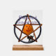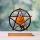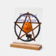 Una calabaza y una percha negra de gato en un pentáculo acorde rojizo-naranja para desear a todos un Samhain feliz.