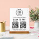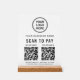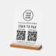 Create a polished, modern checkout experience with this elegant Scan to Pay acrylic tabletop sign. Designed with a white acrylic panel and solid wooden base, this sign adds a professional, upscale look to countertops, reception desks, and checkout stations while making it easy for customers to pay instantly. The clean layout showcases your logo and business name at the top, followed by a clear scan to pay call-to-action and 2 QR codes for popular payment apps. Add your address, phone number, website or other text to keep your business information visible and accessible. Ideal for boutiques, salons, cafés, spas, pop-ups, studios, and service-based businesses, this sturdy acrylic sign is both functional and stylish. It encourages fast, contactless payments while reinforcing your brand’s professionalism and attention to detail.