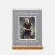 Un simple cartel de tabletas acrílicas en gris conmemoración del funeral muestra "En memoria amorosa" con la foto de tu ser querido, su nombre, fechas de nacimiento y muerte. COINCIDIENDO elementos de nuestra colección.