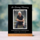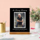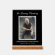 Un simple cartel en forma de tabletas acrílicas conmemorativas del funeral en negro muestra "En memoria amorosa" con la foto, nombre, fecha de nacimiento y muerte de su ser querido. COINCIDIENDO elementos de nuestra colección.