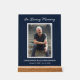 Un simple cartel de carteles acrílicos conmemorativos del funeral de azul marino muestra "En memoria amorosa" con la foto, nombre, fechas de nacimiento y muerte de tu ser querido. COINCIDIENDO elementos de nuestra colección.