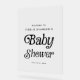 ¡Saluda a tus huéspedes con estilo con este signo de bienvenida Baby Shower Retro en blanco y negro! Con una tipografía audaz de inspiración retro y un diseño monocromo elegante, este letrero de personalizable marca el tono perfecto para una moda y una ducha de bebé intemporal. Personalice el nombre y los detalles del evento de los padres o futuros para crear un punto focal elegante para su entrada, mesa de regalo o fondo fotográfico. ¡Una forma simple pero elegante de acoger a los seres queridos mientras celebras al pequeño en el camino!