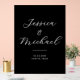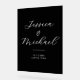 Crea tu propio signo de boda acrílico con nombres personalizados, fecha y otros detalles bodas en caligrafía de escritura elegante en color blanco y negro y tipografía moderna. Una forma elegante y minimalista de saludar a los huéspedes en su día especial.