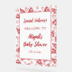 Bienvenidos a su "entrega especial" con estilo, con este divertido cartel de una ducha de bebé con porciones de pizzas rojas y corazones en una extraña frontera dibujada a mano. Diseñado para los futuros padres amantes de la pizza, este cartel rojo y blanco le añade personalidad y encanto a su celebración. Ya sea hospedándose en una pizzería local o instalando un bar de pizzas en casa, este cartel de bienvenida al personalizable marca la pauta para una deliciosa ducha de bebé. Par con invitaciones coincidentes para un aspecto temático completo.