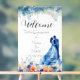 Signo de boda acrílico azul floral. Se puede personalizar según sus preferencias.