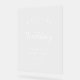 Simpel, Elegante, Boda Transparente "Bienvenida Rótulo Acrílico". Esta exquisita pieza está diseñada para elevar el ambiente de su día especial con su elegancia atemporal y sus características de personalizable. Las parejas pueden agregar sus nombres y fecha de boda para hacer que su decoración sea verdaderamente única y refleje su historia de amor. Ya sea que se muestre en la entrada de su recinto o como punto central de la recepción, este toque personalizado dejará una impresión duradera a sus huéspedes. Compra ahora y añade un toque de refinamiento a tu día especial.