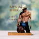 SlipperyJoe's save horse ride straw cowboy gorra musculoso hombre sin camisa torso sosteniendo la silla bisel físico bien definido cincelado seis paquetes gorras chaps saddle cinturón negro hebilla plata rancher life muscles ripel viaje salvaje delante del atrevido vibra occidental artístico gays regalos LGBTQIA yehaw blue jeans