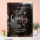Este moderno y elegante cartel de bienvenida acrílico boda presenta su propia foto personal cubriendo el fondo completamente. Un simple overlay negro contiene una tipografía de escritura blanca y un elegante corazón dibujado a mano.