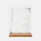 This acrylic sign features a minimalist and elegant design, perfect for displaying your bar menu. The layout is clean and sophisticated with ample negative space, enhancing readability. It includes sections for Beer, Wine, and Spirits in bold headers, complemented by simple sans-serif fonts listing the options. Decorative geometric icons add subtle flair to the corners, while the cursive "bar menu" script on the left adds an artistic touch. Ideal for creating a refined atmosphere in any setting where quality beverages are appreciated.