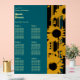 This bold modern teal blue and gold sunflower wedding seating chart features artistic sunflower silhouettes with integrated teal accents and luxe striped patterns, creating an elegant table setting that ties your entire celebration together. Clean typography presents your couple names, wedding date, and seating plan with your guests' names.