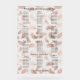 Este cuadro de boda, muy bonito sobre una mesa a medida que los clientes entran para encontrar sus mesas. Rosa de patrón de hojas de oro sobre un fondo claro, todo con texto negro visible.