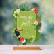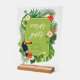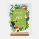 Cartas y regalos de un boda acrílico con un marco verde de primavera y un borde con un tucán atrevido sentado entre las flores de los hibiscos acuarelas y las hojas de palma. Este diseño de señas bodas tropicales es perfecto para el verano, bodas de playa y tropicales, cumpleaños y otros eventos especiales. Busque ID577 para ver productos coincidentes.