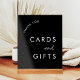 Señal Acrílica Tarjetas de matrimonio negro y mesa de regalo
