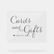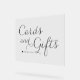 Pídele a los huéspedes que dejen sus tarjetas y regalos con esta tarjeta de personalizable y el signo acrílico de los regalos. Presenta caligrafía negra delgada con tipografía simple. Personalice agregando sus detalles. Este signo de caligrafía y regalos es perfecto para cualquier tema o temporada boda. Los elementos coincidentes están disponibles.