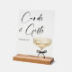 Guíe a los invitados con estilo con este elegante letrero de mesa de Tarjetas y Regalos con tema de champán, perfecto para una sofisticada celebración de despedida de soltera. Con una delicada ilustración de copa de champán atada con una cinta negra y tipografía de letra script moderna, este diseño agrega un toque pulido y elegante a su mesa de regalos o tarjetas.