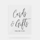 Simple y elegante cartel de boda con la frase "Tarjetas y Regalos" mostrada en escritura negra con un fondo acrílico transparente. Personalice el signo acrílico con texto personalizado como sus nombres, fecha boda, mensaje de agradecimiento, etc. El letrero también se puede usar para otros eventos como duchas de novias, duchas para bebés, fiestas de cumpleaños y más.