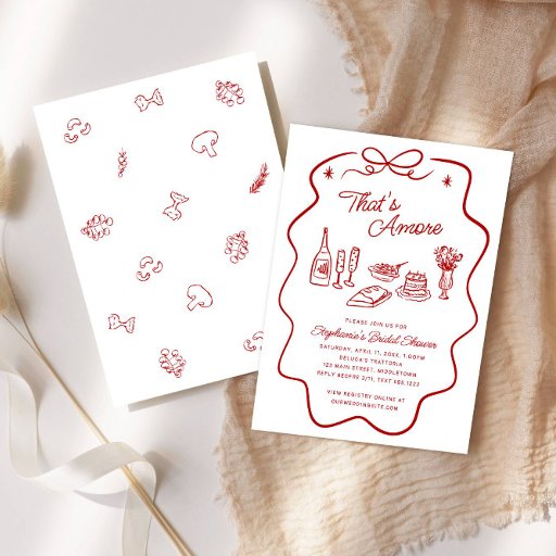 Welcome guests Italian-style with this That’s Amore bridal shower sign, featuring a red doodle frame and playful food illustrations. Easily edit the text and personalize the details for a fun, charming celebration.