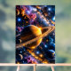 Señal Acrílica Título Odisea Galáctica Arte de Saturno y nebulosa